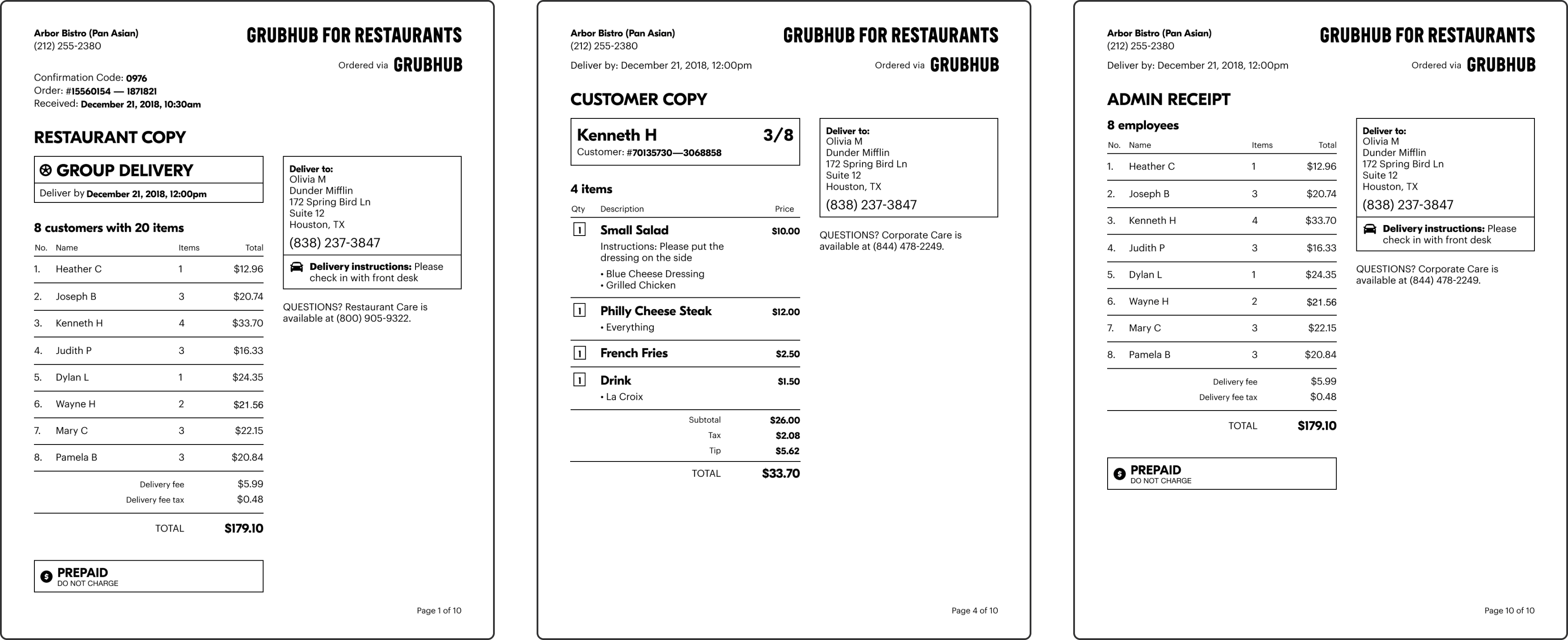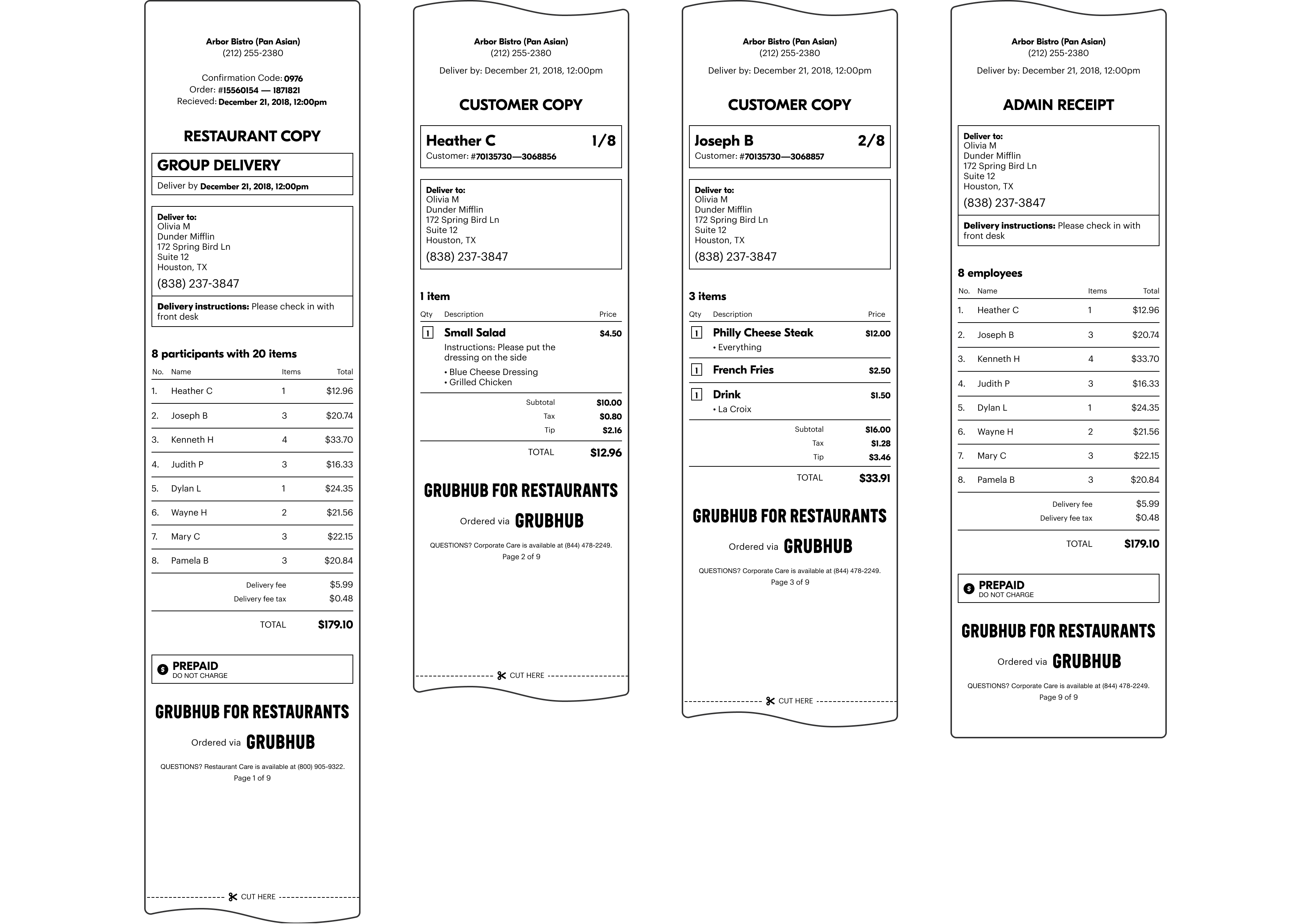 These are restaurant faxes for corporate group orders—you’d be surprised how much restaurants still rely on archaic physical processes. To ensure order accuracy and maximize adoption, it was important our solution fit into restaurants’ existing workflows.